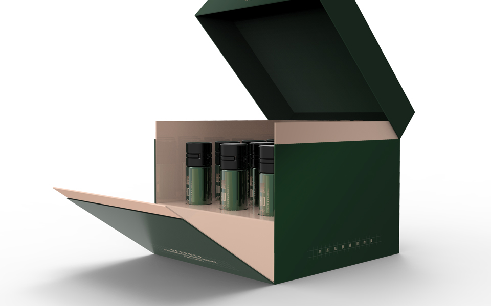 材質選擇:瓶身使用深綠避光玻璃,保護高活性抗皺成分免受光照降解;外盒選用高硬度啞光紙,提升觸感與質感,傳遞專業(yè)、安心的護膚感知。