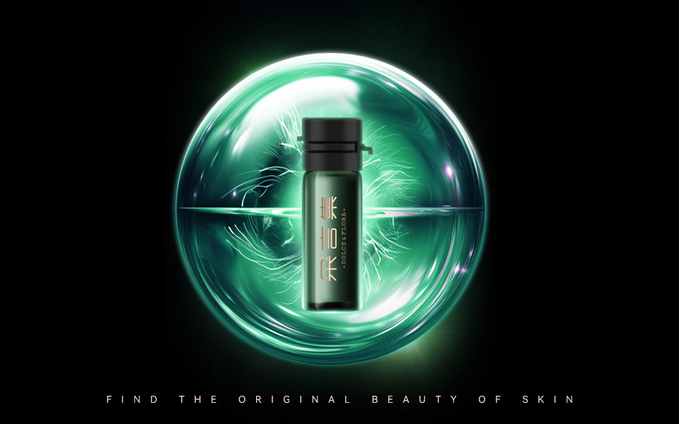 字體與排版:豎排「朵言集」?jié)h字+英文「DOLCE&FLORA」小字,融合東方雅致與國際簡約,傳遞「回歸原初美肌」的品牌態(tài)度;無冗余裝飾。
