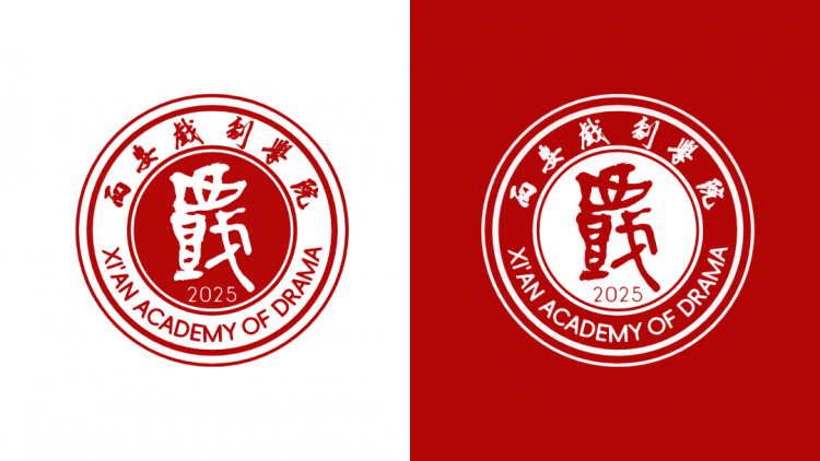 「西戲」下方標注創(chuàng)始年份「2025」,外圈自上而下環(huán)繞學院中英文名稱「西安戲劇學院」與「XI’AN ACADEMY OF DRAMA」。