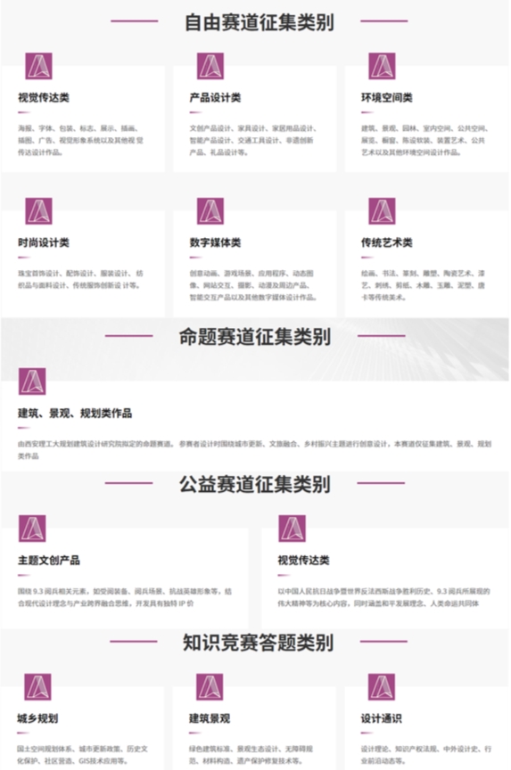 本屆大賽除自由賽道、命題賽道及公益賽道外,另增設紫藝獎-規(guī)劃建筑設計知識競賽:“賦能設計思維·智啟行業(yè)未來”。