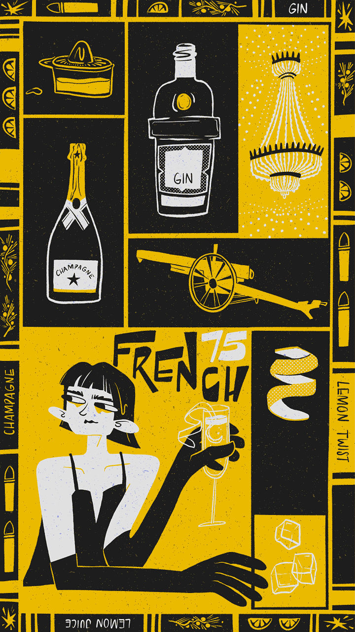 此個(gè)人項(xiàng)目讓Léane得以進(jìn)一步突破自己的風(fēng)格,并將動(dòng)態(tài)元素融入創(chuàng)作中。該系列作品探索了多款經(jīng)典雞尾酒:意式濃縮馬天尼,能讓人提神醒腦、活力煥發(fā);法式 75(雞尾酒),酒勁十足,據(jù)說其沖擊力堪比 75 毫米口徑炮彈;莫吉托的靈感則源自船上用于防治壞血病的藥用混合飲品。